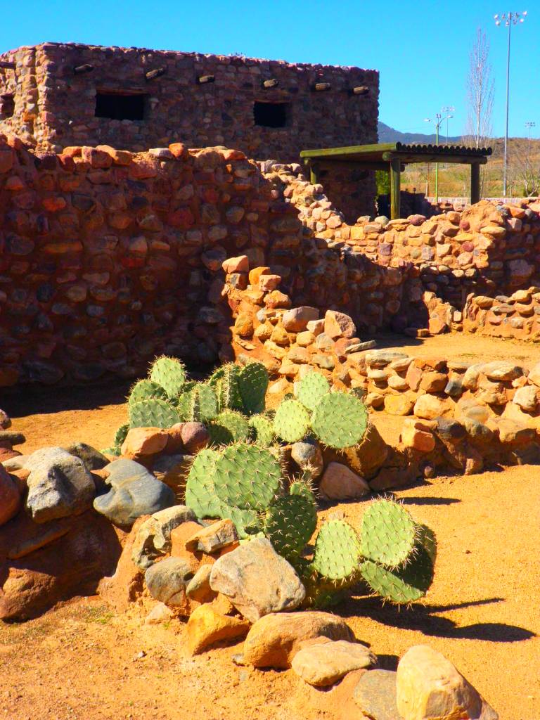 Because Besh is one of multiple prehistoric masonry pueblos located in our area, noted archeologist, Adolf Bandelier, explored the region and mapped Besh in 1883. The site sat dormant until the WPA hired archeologist Irene Vickery to excavate the site from 1935 until her death in 1940. Her passing and the start of World War 2 shifted focus away from Besh and the site sat abandoned and open to damage by the elements until the 1980’s when the City of Globe stepped in, had the site re-excavated by ASU archeologists, and then worked to preserve the artifacts and recreate the dwellings by training local youth in masonry and building skills. Besh ba Gowah is a unique treasure and yet another thing I love about the Globe-Miami-San Carlos area. It is open seven days a week from 9-4:30, is ADA compliant and pet-friendly, and tickets are a bargain ($5 adults, $4 seniors, and kids 12 and under are free). I recommend watching the 12-minute informative video at the visitor’s center before exploring the structures. This entire site can be enjoyed in under 30 mins if you are pressed for time. However, if you are traveling at a more leisurely pace, don’t miss the museum with well-preserved artifacts from the site, including superb examples of multi-colored Gila polychrome pottery and a variety of textile fragments. I also recommend stopping at the gift shop to peruse their wide selection of books, Southwest food and jewelry, pottery, and metal art. If you are visiting with younger children, the ethnobotanical garden affords a hands-on experience of grinding corn in the same manner as the Salado, and the museum has multiple stone rubbing opportunities and a pottery touch table.