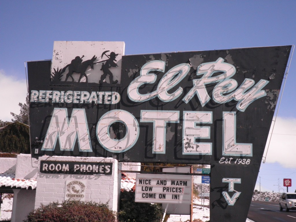 The “El Rey Refrigerated Motel” sign was glowing with activated neon and simply captivating. I had a sense of being transported back in time. Suddenly the unappealing views of dilapidated buildings started to be overshadowed by the midcentury kitsch and uniqueness of this and other business signs in the area. These little clues of coolness suggested there was more to this place than immediately meets the eye. They represented a unique form of public art and were items that could not be replaced if lost. Somehow the community had saved these signs.